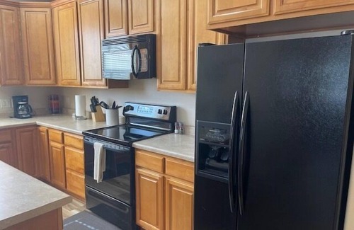 Come enjoy this beautiful Springs condo . This updated condo has 3 bedrooms upstairs, 2 bathrooms upstairs and a 1/2 bath on the ground floor with its own kitchen and will comfortably sleep 6 adults. It features beautiful furnishings and amenities! Including a spacious and well appointed kitchen with a toaster, coffee maker all utensils and dishware. Additional amenities include full size washer & dryer, linens, flat screen TVs, basic cable and garage parking.