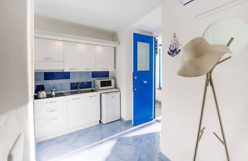 With nautical-inspired decor and a warm, welcoming atmosphere, the home also boasts a balcony with a breathtaking view of the Gulf of Naples, the perfect spot to enjoy the sunset.