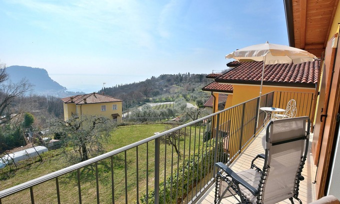The Blue Apartment is located on the hills overlooking Lake Garda in the village of Marciaga just 3 kilometers from the beaches and the town of Garda, and a short distance from the famous Cà Degli Ulivi Golf Club. The apartment is part of a small condominium consisting of three independent housing units with different characteristics and all intended for tourist use.The Blu apartment is on the first floor, tastefully furnished and can accommodate 2 guests in one bedroomA comfortable room with kitchen area and a bathroom with shower complete the description of the structure.From the living room and bedroom there is direct access to a large and sunny balcony equipped with a table for dining and sun loungers and from which you can enjoy a breathtaking view of the lake and surrounding hills. Pertaining to the apartment there is also a private garden with a large BBQ and additional sun loungersPrivate parking is provided in the courtyard of the structure for one car.For families or larger groups there is also the possibility of renting together - if available - the Orange and Red apartments, bringing the total accommodation capacity to 12 guestsC.I. M0230300141 CIN.IT023030B4HIC9T36S