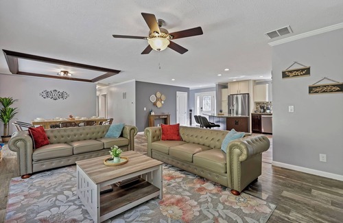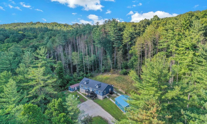 Bluebell Cottage is a secluded retreat surrounded by nature and wildlife, perfect for families and groups. With 5 bedrooms (2 kings, 1 queen, 2 with bunk beds), a fully stocked eat-in kitchen, and open living, there’s room for everyone. Enjoy the game room with a pool table, relax on the front patio with peaceful views, or soak in the back patio hot tub. Cook out on the Blackstone grill and gather for meals inside or out. A private, comfortable getaway to create lasting memories!
