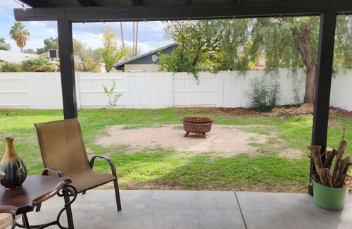 Enjoy a cozy stay in this spacious 3-bedroom, 3-bathroom home with everything you need for a relaxing getaway! Kick back in the backyard on the covered patio with comfy chairs, side tables, a fire pit, and a charcoal BBQ for grilling nights. Stay entertained with a piano and the smart TV, and enjoy the convenience of free parking, wifi, plus a washer and dryer. Perfect spot for families or friends looking for a chill retreat!
