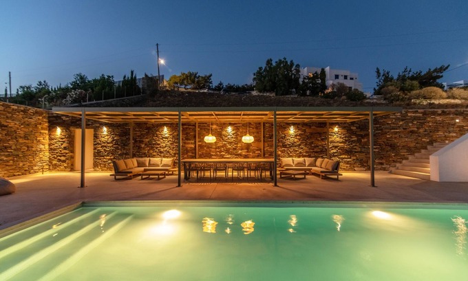 Best-rates for the Blue Gres Villa Tinos starts from $267 per night with includes Bedding/Linens, Wellness Facilities, Toiletries, Child Friendly, Internet, Laundry, Air Conditioner, Pool, Security/Safety, Guest Services, Kitchen, Parking, TV with all other amenities. Perfect for Weddings is committed to ensuring every guest experiences a comfortable and extraordinary stay, whether planning a romantic getaway, a honeymoon, a pet-friendly stay, or celebrating with the entire wedding party.