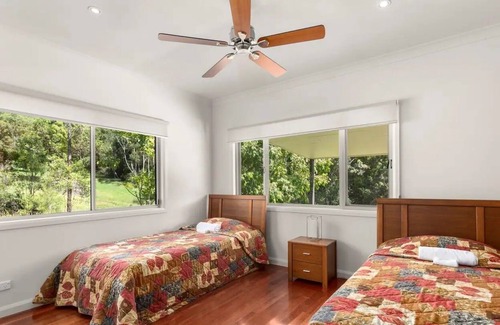 We look forward to welcoming you to Sherwood Farm. Enjoy the fresh air and peaceful surroundings of our eco-friendly 70ha organic farm set in a tranquil bush setting, with local beaches only 15 minutes away. Relax on your very own large verandah overlooking the dam and mountains beyond or just relax by the slow-combustion wood fire. Disconnect from technology and forget the everyday stresses while enjoying time with family and friends. An easy 35 min drive to Coffs Harbour&20mins to Woolgoolga.