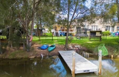 Welcome to Blue haven Gypsy Paradise, nestled among lush trees and right on the water's edge. This unique experience offers the use of 2 Gypsy caravans in addition to the main house. The spacious deck is ideal for hosting small gatherings, complete with a BBQ for outdoor cooking. The massive green yard boasts a trampoline, jetty, and fire pit, with access to free kayaks for exploring the water. Whether you're looking for relaxation or adventure, the choice is yours. Located on the Central Coast just 1.5 hours from Sydney, this peaceful retreat offers a relaxing escape suitable for multiple families or a group of friends. The property features a spacious deck overlooking the grassy backyard, providing a perfect vantage point to watch children play or bounce on the trampoline. A private jetty for fishing and launching kayaks, along with fantastic entertaining areas including a BBQ and campfire for marshmallow toasting, offer ample opportunities for outdoor enjoyment. The vast grassy backyard invites guests to unwind and connect with nature, while nearby beaches and shops are only a short drive away. In addition to the main house, the property has three handcrafted vintage-style caravans on-site. The main house can accommodate 8 guests across three bedrooms, each offering unique sleeping arrangements: - Main bedroom: Double bed and cot (sleeps 2 adults + infant) - 2nd bedroom: Triple bunk plus trundle (sleeps up to 4, often used as a family or kids room) - 3rd bedroom: 2 single beds, convertible to a double (sleeps 2) The house has 1 bathroom inside and the other bathroom is located outside adjacent to the garage, easily accessible from the backyard and for the caravan guests. The largest caravan (Brown), situated at the front of the property, has a double bed and 2 small single beds, accommodating up to 4 guests. Suitable for 2 adults and 2 children, this caravan offers a cozy retreat. It has a portable aircon and heater and a bedside lamp. The smallest caravan includes 2 single beds (narrower than standard-see photos). This caravan does not have power, but has a battery operated fan/evaporative cooler and lamp. Please note, guests staying in the caravans must bring their own towels and linen, as these are not provided for the caravan occupants (we provide the mattress protectors and pillows with protectors). Linen for the caravan beds (doona, fitted sheet, quilt cover and pillow case) can be supplied for $12 per bed made. Please advise us on booking if you would like to take up this option. All linen and towels are provided for the main house occupants. The medium (blue) caravan in the backyard can serve as a cubby house or chill out space, providing a fun and versatile space for children to play and relax. The property's backyard, once the site of an annual gypsy festival celebrating International Romani day, now serves as a private paradise for guests to escape and unwind. The house has recently undergone renovations, preserving its vintage fixtures and furniture, including colorful stained glass windows and lighting pendants throughout. Designed as a family holiday home, the property is equipped with everything needed for a comfortable and homely stay. Children will find endless entertainment with the trampoline, jetty, gypsy cubby house, kayaks, and fishing opportunities, ensuring a memorable and enjoyable experience for all guests. Entire house , 3 gypsy caravans, private jetty. No garage parking but ample parking in driveway and on street. Self check-in details will be provided the day before arrival. I’ll be available throughout the stay and will respond to messages on the airbnb app or calls directly to my mobile Situated in a very quiet neighbourhood only 1.5hours from Sydney along the Spring Creek Waterfront. From the moment you step foot in the backyard, you will feel like you’ve escaped to a waterfront retreat with a gorgeous outlook, rustling trees and the sounds of nature. There are shops and eateries less than 5 minutes away, beaches and walks only 10-15mins drive away. It’s an escape with all the conveniences nearby if you need them! It’s only a short drive to the local shops and eateries. A Car or bicycle will be needed to get around the local area. The Budgewoi lake is only a 5-10min drive away. Local beaches are about 10-15mins drive away. Nearby attractions - Norah Head & it’s surrounding beaches - 20min to Frazer Park - 15min to Munmorah State Conservation Area - 19mins to TreeTop NetWorld Shops: -Aldi 2mins - Coles Northlakes shopping centre 7mins - Northlakes Tavern (kid friendly pub/bistro) 7mins - Lake haven Shopping Mall (Kmart, major stores) - Westfield Tuggerah 20mins DIRECT WATERFRONT PROPERTY: Young children must be supervised at all times and please consider this if booking with pets. Life jackets must be used with kayaks (we supply them). However we do not take any responsibility for any injury or accident related to kayak use.