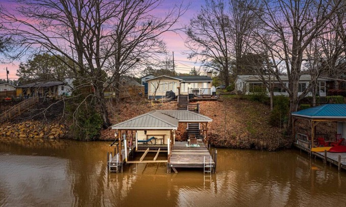 Kayaks and floaties provided for enjoying the lake. Bluetooth speakers are all set for listening to music on the deck. The dock is covered and uncovered for however much sun you want to soak in! We have a hammock and manual jet ski lift you can use.
