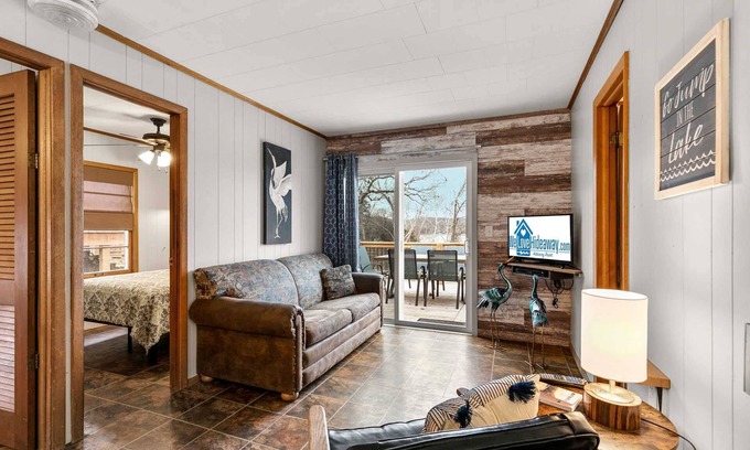 Charming, updated 2 bedroom cabin on Table Rock Lake, with resort pool, dock, and HUGE DECK!.
