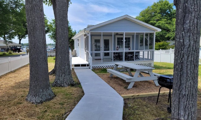 Blue Heron Cottage is a cozy beach cottage offering 2 bedrooms - Master w/Queen bed and Guest Room with Twin & Full size bunk beds. Cottage was completely renovated in March 2023. Enjoy a screened porch off the living room and amazing sunset views over Monroe Bay right from your front porch! Ample fenced yard, private driveway and outdoor seating. Monroe Bay is 1 block from the cottage and the Potomac River is 3 blocks. Easy access to beach, local restaurants and stores. The grocery store is 5 minutes by car. Use of golf cart is available for additional fee. Cottage offers guests Wi-Fi and cable. Bath towels and bed linens are provided. Please bring your own beach towels.