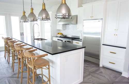 The amenities at Blue Heron are nothing short of exceptional. You will find two master suites complete with king beds and spa-like bathrooms, alongside four additional guest rooms featuring queen and twin beds. The heart of the home boasts a state-of-the-art kitchen equipped with a 14-foot center island, Wolf range, and ample seating for both intimate gatherings and larger celebrations. For outdoor festivities, enjoy a 600 sq foot Ipe wood deck, perfect for al fresco dining while gazing out at the sparkling waters. Additionally, indulge in the custom pool or relax in one of the multiple living spaces, all designed with unique touches to ensure comfort and style throughout your stay.