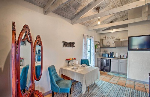 Step away from the stress of everyday life at Los Pinos Ranch Vineyards, a lovely winery and vineyard located in beautiful Pittsburg, Texas. Enjoy a night of wine and romance then take a stroll along the vines to your very own 1-bathroom studio vacation rental. The ‘Blue Jay Cottage’ offers a quaint and romantic setting for 2 guests, complete with a well-equipped kitchenette, a luxury jacuzzi tub, a plush queen bed, and a furnished deck with beautiful views of the vineyard.