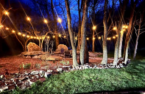 - Scenic Outdoor Areas: Enjoy the natural beauty of 3 acres of land, a furnished deck, and a large fire pit perfect for outdoor gatherings and celebrations under the stars.