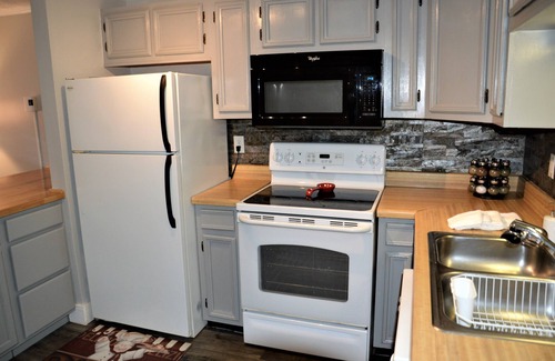 Full kitchen stocked with cooking and baking essentials, linens, bath/kitchen towels, soap, shampoo, coffee, & W/D access. 3 Smart TV's with Roku, log in to your subscription service.