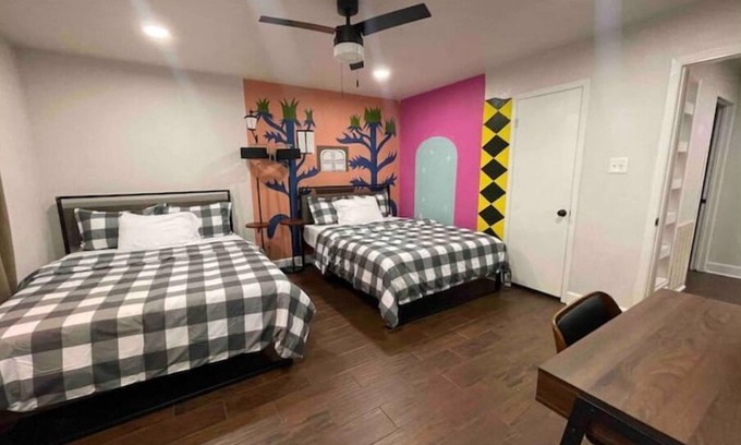 Best designer + swimming pool Airbnb of Houston. If you had a gathering or a celebration please discuss with hosts. Spanish house with 5BRs and amazing pool right by Hobby Airport. Sleeps at least 14 You'll have a great time at this comfortable and beautiful place to stay. Book now before prices go up