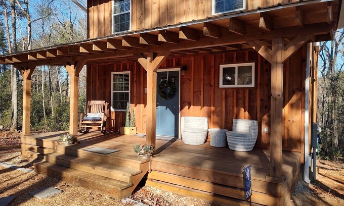 The Blue Laurel cabin is nestled in the beautiful little town of Mountain Rest, SC. Relax in the peacefulness & serenity of nature on the private front or back porch of this little piece of heaven in the woods. The cabin accommodates up to 4 guests with a queen bed and a full-size sleeper sofa located in the living area. Enjoy the firepit, horseshoe pit or 2 hammocks while grilling. Located 5 minutes from the sparkling Chattooga River and 25 minutes from Highlands-NC, Cashiers-NC, Clayton-GA and only 15 minutes from the quaint little town of Walhalla with a multitude of eateries and fine shops. Come enjoy the many local waterfalls, scenic rivers, hiking trails, and the newly constructed Stumphouse Mountain Biking Park alongside the historic Stumphouse Tunnel. The local Fly shop can assist you with all your fishing accessories. We are a short 18-minute drive to Chattooga Belle Farm which provides a great selection of farm to table staples as well as Wine tasting. Come relax and refresh your soul with us! We are pet friendly, limit of 2, less than 50#. Dogs must be crated/kenneled if left unattended on/inside the premises.