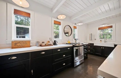 Welcome to our unique farmhouse meets San Francisco loft nestled in the mountains! With over two beautifully maintained private acres to stretch out on, you’re sure to find a serene space to unwind. Whether it’s watching snow fall from the deck, taking in the views of the trees from the Adirondack chairs, or cozying up to a good book in the custom alcove, this one of a kind destination has plenty of spots to relax.