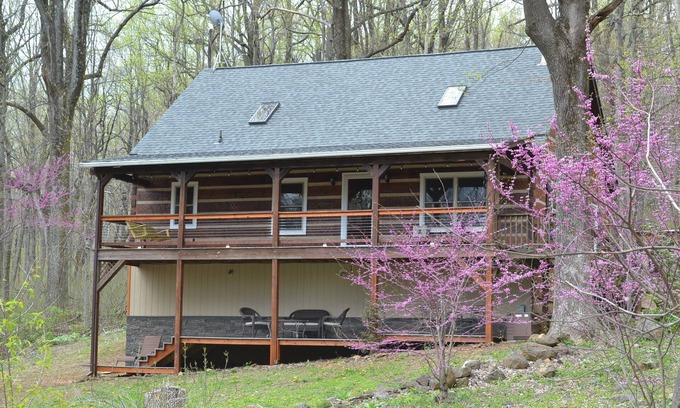Endearing log cabin, perfect for anyone looking to getaway. Nestled on five, beautiful acres of land at an altitude of 1800 feet just minutes walk from the Appalachian Trail and creek; and just minutes drive from nearest winery.