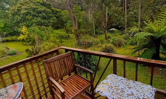 Ferncreek Studio provides a fully private space with its own entrance, a spacious balcony, and direct access to a large backyard featuring native trees and flowers and tranquil creek surrounded by ferns. The studio is part of the main property but offers complete privacy, ensuring a peaceful stay.