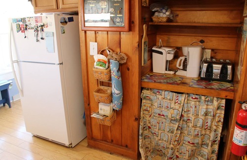 Fully stocked Kitchen we offer many supplies and appliances to make your stay feel like being at home lobster pot , drip coffee machine , Keurig coffee machine, toaster, microwave , glass flat top stove with oven, fridge with freezer , service for 6 and cooking utensils