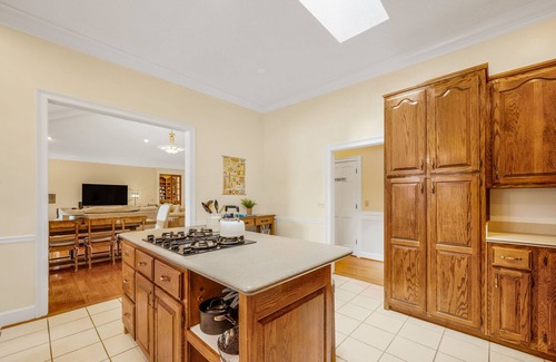 The main living room has a beautiful gas fireplace, 2 large couches and swivel chairs to take in a movie on the 70’ TV or just hang out. There is a separate seating area for 4 to have a quiet rest or plan your next adventure. The large wood dining room table seats 12 with the ability to add a card table for extra seating for big holiday meals.