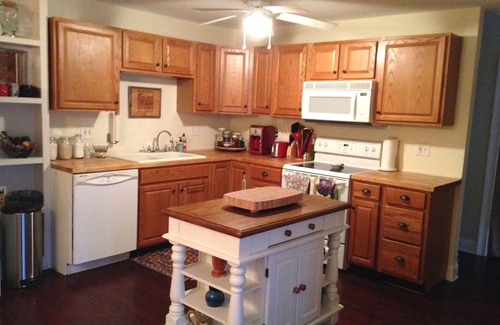 You will feel right at home in our cottage and settle in for a night of comfort after a day of activities. There are two bedrooms downstairs, one with with a queen bed and the other with a day bed with trundle bed. Upstairs is a suite; a bedroom with a queen bed, a sitting area, and bathroom. The kitchen is complete, well-equipped and stocked for the chef in your group. The dining table has room for 6, with place settings for 6. There's satellite TV and internet.