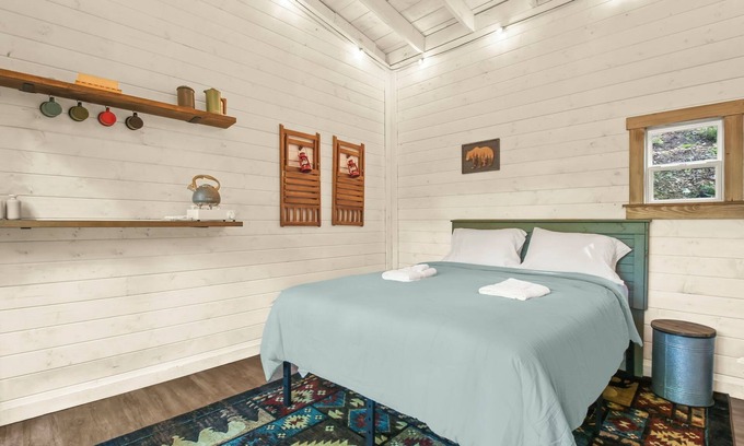 The cabin is powered by a 2000-watt solar generator, which provides energy for lighting, and charging any devices you may bring. The cabin is also equipped with a 10,000 BTU space heater to keep you warm on chilly nights. Additionally, we provide queen size Tempur-Pedic mattress to ensure your comfort.
