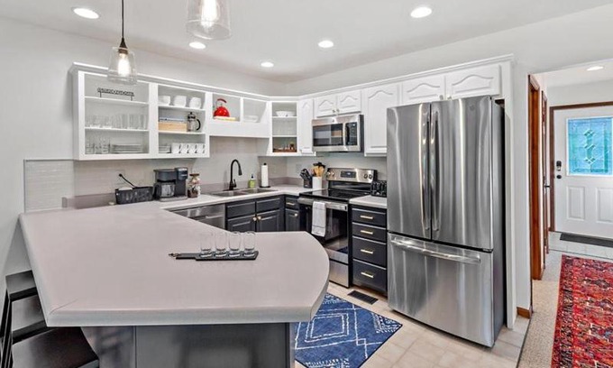 Based on the information received from our partner, the Frank house has not specified they are wheelchair accessible. Likewise, there is not an elevator specified as being available at the property. Specific accessibility details may be addressed in the property details section of this page.