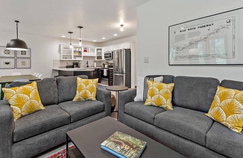 Chic & impeccably appointed, Blue Ridge View townhome offers a desk station in every room, a deck, a screened porch, a charcoal grill, and access to walking trails, disc golf, and breathtaking mountain views within the community!