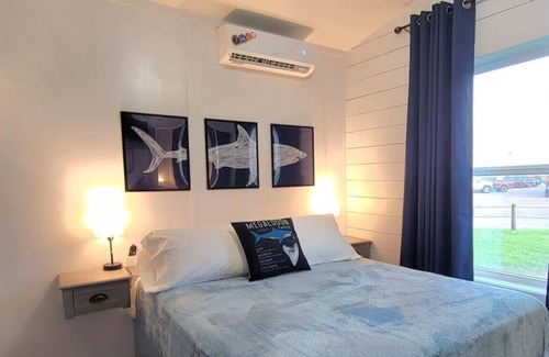 The Blue Shark is a Tiny Home on the grounds of the Indianola Fishing Marina (IFM). In this recently updated cottage you will find a small kitchenette with a sitting area and a separate bedroom with a Queen size bed and a custom bunk bed with Twin XL mattresses. If you want to come fish all day and all night, having a place walking distance to purchase your food and drinks, the IFM's Blue Shark will be the best place to stay.