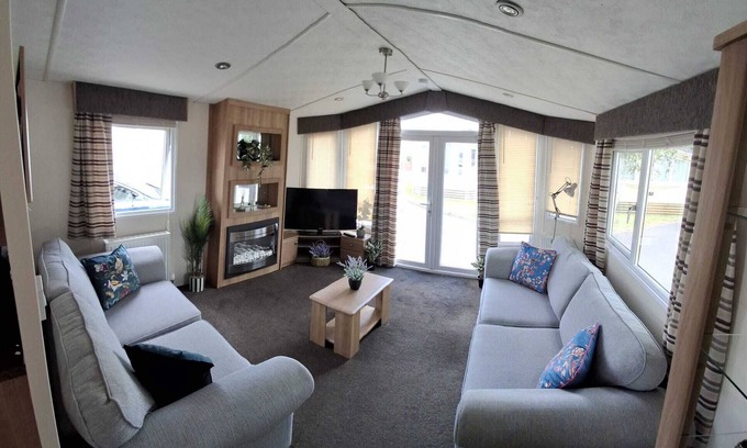 Nestled within the serene Blue Water Holiday Park, our caravan offers a tranquil escape, featuring only 30 caravans on the peaceful park. Enjoy views of the countryside from the decking, as you take a break from the hustle and bustle of everyday life. Just a short 10-minute stroll leads you to Dawlish Warren Beach, where the Sea meets the River Exe.