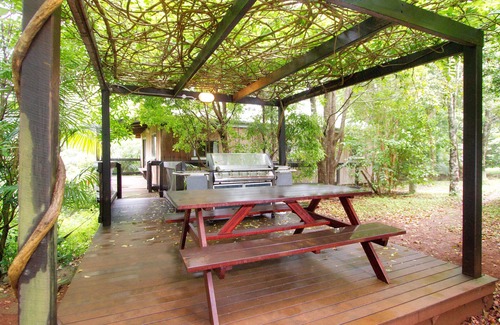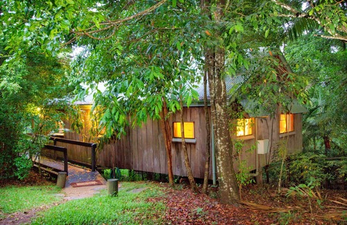 Self-contained timber cottage nestled in the rainforest 680 metres above sea level.