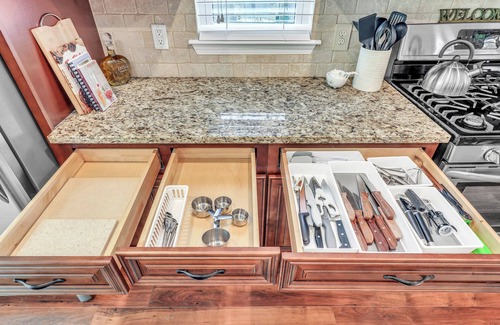 Experience Richmond Hill like a local in this charming 3-bedroom house. The cozy bedrooms feature 2 queen beds and 2 twin beds, perfect for a family or group of friends. Enjoy the crisp and clean bathroom with white fluffy towels. The living room and kitchen are open each other offering a space to interact with family and guest alike. The leather couch has two built in recliners, perfect for watching the large TV or taking in an afternoon nap. The well appointed kitchen has everything you need to prepare a gourmet meal or a picnic to take to the park.