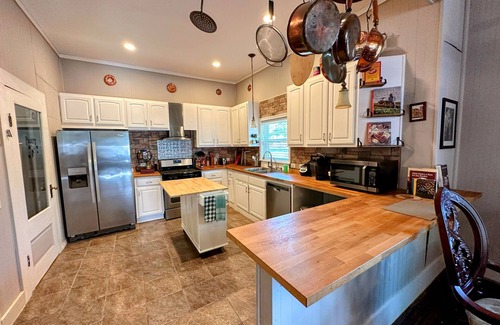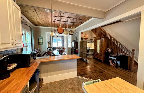 Because of our antique furniture and steep indoor staircase, Blueberry Bungalow is not ideal for small children. Our other listings are great choices if you need a kid-friendly rental. Entering the house requires navigating a few steps, so it's not wheelchair-accessible. Our 'Small Town, Big House' property is much easier to navigate in a wheelchair.