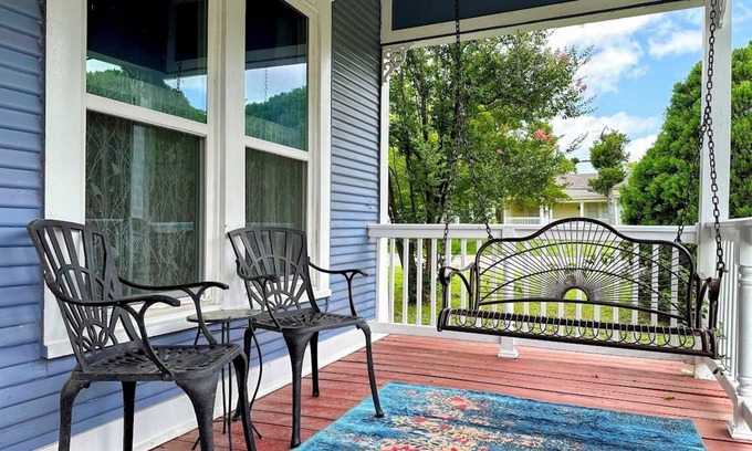 Blueberry Bungalow is a classic 1920s-era Texas home with tall ceilings, a sweeping front porch, loads of rustic charm, and modern amenities, all located just a few blocks from Taylor's historic downtown.