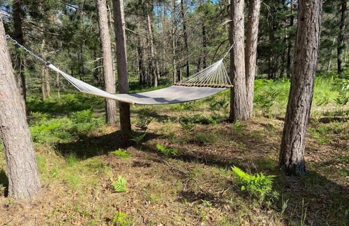 Wake up and enjoy your morning coffee on the large deck or watch the sunset from the upper balcony. Lounge in the hammock out front that is safely nestled between two majestic red pines.Dine al fresco under the stars next to a cozy fire pit.