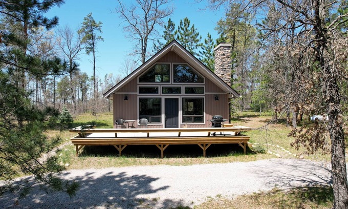This off-grid, sustainable beauty lies in the heart of the Huron-Manistee National Forest. There is more to do here than you could do in a month, so come stay a while and enjoy everything the great outdoors (and this spectacular little home) has to offer.