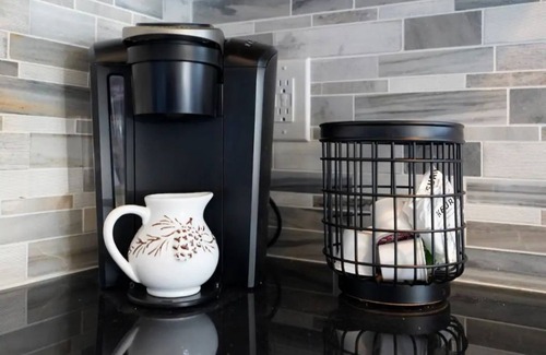 Grab your morning coffee from your choice of drip coffeemaker or Keurig coffeemaker, supplied with pods and a milk frother.