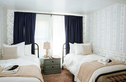The Bluebird Suiteincludes two bedrooms with a private bathroom across the hall. The Wild Rose Room has a queen bed, and the Blackberry Room has 2 twin beds. Total occupancy is four people.