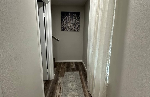 Super cute 2 story, 2 bed, 2 full bath cabin. Only 1/2 mile from Lake Tawakoni, right on the main drag across from the Deer Run Golf Course! Open kitchen is stocked with utensils, a retro fridge, full size stove and micro, and Keurig for your coffee. Watch your smart TV in the upstairs master Queen bed. 2nd bedroom has a full/twin bunk bed. Can sleep 6 with provided Queen blowup mattress. Laundry on-site. Longer stays ok! Cabin #8