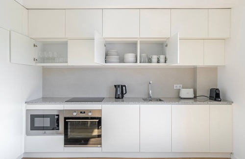 Thoughtfully designed with bespoke finishes, modern furnishings, and a fully equipped kitchen, you’ll enjoy that “I’m home” feeling with this Blueground apartment. Whether you’re lounging in your pretty living room streaming the latest and greatest entertainment on the smart TV or premium wireless speaker, or getting some well-earned rest on the superior quality mattress with luxury linens, you’ll fall in love with everything this Alvalade apartment has to offer.