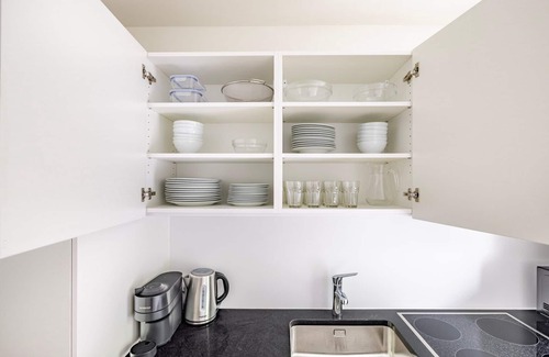 Thoughtfully designed with bespoke finishes, modern furnishings, and a fully equipped kitchen, you’ll enjoy that “I’m home” feeling with this Blueground apartment. Whether you’re lounging in your lovely living room streaming the latest and greatest entertainment on the smart TV or premium wireless speaker, or getting some well-earned rest on the superior quality mattress with luxury linens, you’ll fall in love with everything this Basel-Vorstaedte apartment has to offer.