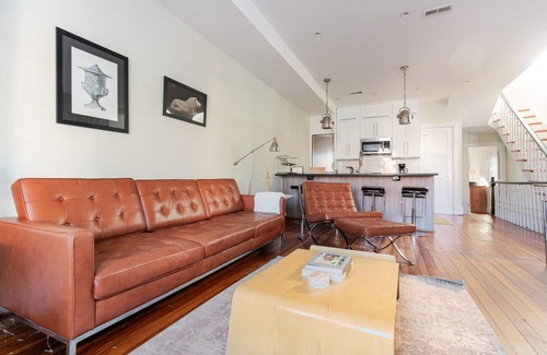 Thoughtfully designed with bespoke finishes, modern furnishings, and a fully equipped kitchen, you’ll enjoy that “I’m home” feeling with this Blueground townhouse. Whether you’re lounging in your stylish living room streaming the latest and greatest entertainment on the smart TV or premium wireless speaker, or getting some well-earned rest on the superior quality mattress with luxury linens, you’ll fall in love with everything this Dupont Circle townhouse has to offer. This townhouse also offers in-townhouse laundry.