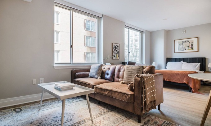 Blueground | Foggy Bottom studio apartment is located in Foggy Bottom. Blueground | Foggy Bottom studio apartment provides accommodation, featuring Pet Friendly, TV, Security/Safety, among other amenities. This Apartment features Pet Friendly, TV, Security/Safety, to make your stay a comfortable one.