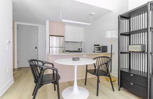 As with any Blueground apartment, you’ll find a thoughtfully designed space complete with beautiful furniture and a fully equipped kitchen in this one bedroom property. And, thanks to our superior quality mattresses, luxury linens, and towels, you can relax knowing you’ll always feel comfortably at home. When you’re ready for some fun, you can take in the New York vibes or bring the entertainment to you with the premium wireless speaker or smart TV. This apartment also offers in-apartment laundry.