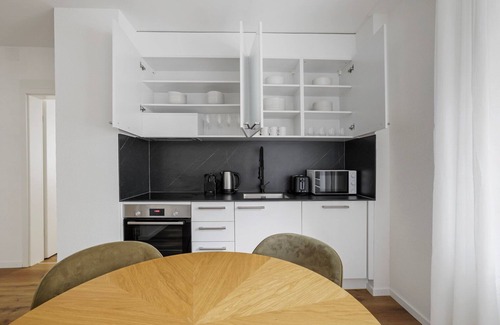 Thoughtfully designed with bespoke finishes, modern furnishings, and a fully equipped kitchen, you’ll enjoy that “I’m home” feeling with this Blueground apartment. Whether you’re lounging in your sophisticated living room streaming the latest and greatest entertainment on the smart TV or premium wireless speaker, or getting some well-earned rest on the superior quality mattress with luxury linens, you’ll fall in love with everything this Oerlikon apartment has to offer.