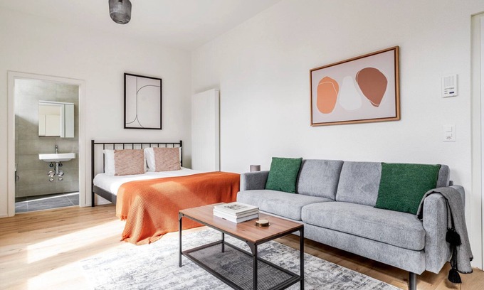 Thoughtfully designed with bespoke finishes, modern furnishings, and a fully equipped kitchen, you’ll enjoy that “I’m home” feeling with this Blueground apartment. Whether you’re lounging in your charming living room streaming the latest and greatest entertainment on the smart TV or premium wireless speaker, or getting some well-earned rest on the superior quality mattress with luxury linens, you’ll fall in love with everything this Seebach apartment has to offer. This apartment also offers in-apartment laundry.