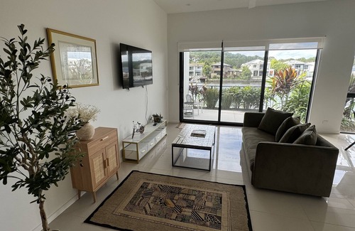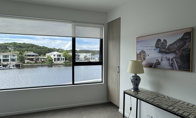 This 2 story waterfront villa promises an enjoyable experience, offering its incredible interior designs to provide guests with a luxurious feel. The style of the interior takes after a cozy modern design, plain and simple. The Home overlooks a beautiful water view from any part of the house, and is accessible to many facilities that the complex has to offer, including a pool, gym, BBQ area. Located nearby include local Shops, theme parks such as Movie World, Wet'n'Wild, and Top Golf.