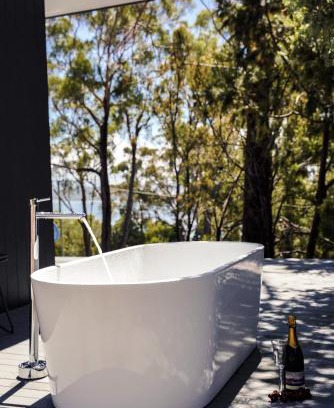 Offering an open-air bath, Blyth Retreat, Bruny Island offers accommodations in Simpsons Bay. The vacation home, set in a building dating from 2021, provides free Wifi and free private parking. The property features barbecue facilities. Providing sea views, this vacation home also offers a flat-screen TV, a well-equipped kitchen with a dishwasher, an oven, and a microwave, as well as 1 bathroom with a bath and bathrobes. The property has an outdoor dining area. Hobart Airport is 43 miles away.