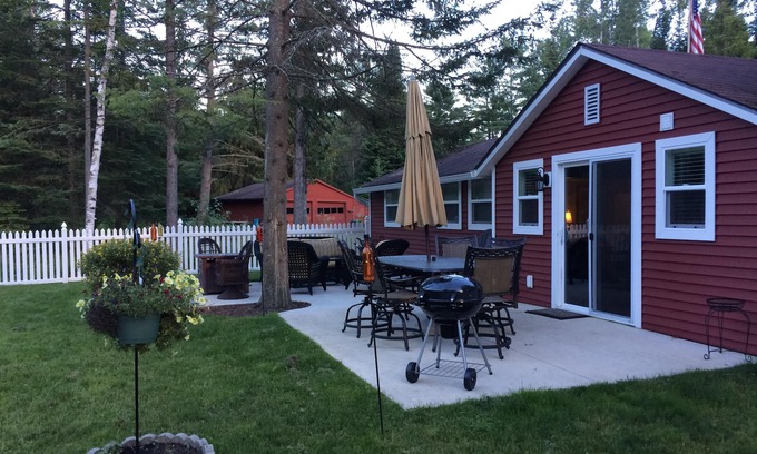 Welcome to River Life Paradise, a cozy 2-bedroom, 1-bath cottage tucked into 18 acres of private forested land with 2,600+ feet of direct frontage on the Boardman River — just 10 miles from downtown Traverse City. Enjoy a relaxing getaway surrounded by nature with a year-round hot tub, outdoor patio, fire pit, hiking trails, and access to world-class fishing and paddling right outside your door.