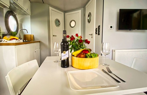 Boat 'Cosy Hannah Führerscheinfrei' with Private Terrace is located in Schwerin. Boat 'Cosy Hannah Führerscheinfrei' with Private Terrace provides accommodation, featuring TV, Ocean View, Balcony/Terrace, among other amenities. This Boat Rental features TV, Ocean View, Balcony/Terrace, to make your stay a comfortable one.