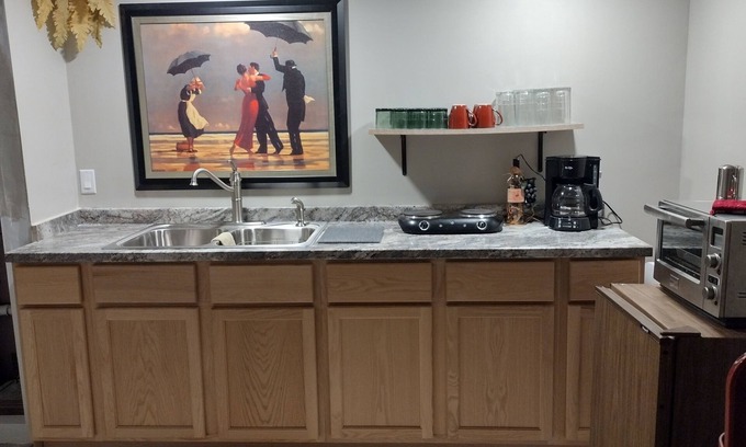 New multi-bedroom home in quiet, peaceful, safe neighborhood. Full kitchen and bathroom, laundry facilities, and lots of extras, makes your stay extra special. Two patios to enjoy the outdoors, local lakes, ponds, hiking trails, and even Buffalo to view. Downtown just a five minute walk, 14 restaurants, 3 boutiques, 3 grocery stores, museums and art galleries. Lots to see.