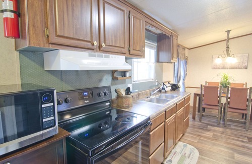 Our home is spacious in all the right places. Cozy with a Lodge feel, plenty of yard space to hang out and relax, and nestled within the Ocala National Forest. 4 Natural Springs, Volusia Speedway, and the St. Johns River, are 5-15 mins away. 20-45 is Daytona Beach, Ormond Beach, and Silver Springs Park. Whether you Go fishing, swim with manatees at Silver Glenn, kayaking, hiking, or race around the track, we are sure you will find adventure waiting . Astor also has great dining choices. Alexander Springs, Juniper Springs, Silver Glenn, and De Leon are all less than 15 mins drive. Racing at the Volusia Speedway is always great to see. A 2 bedroom 2 bathroom home.